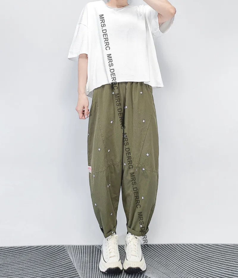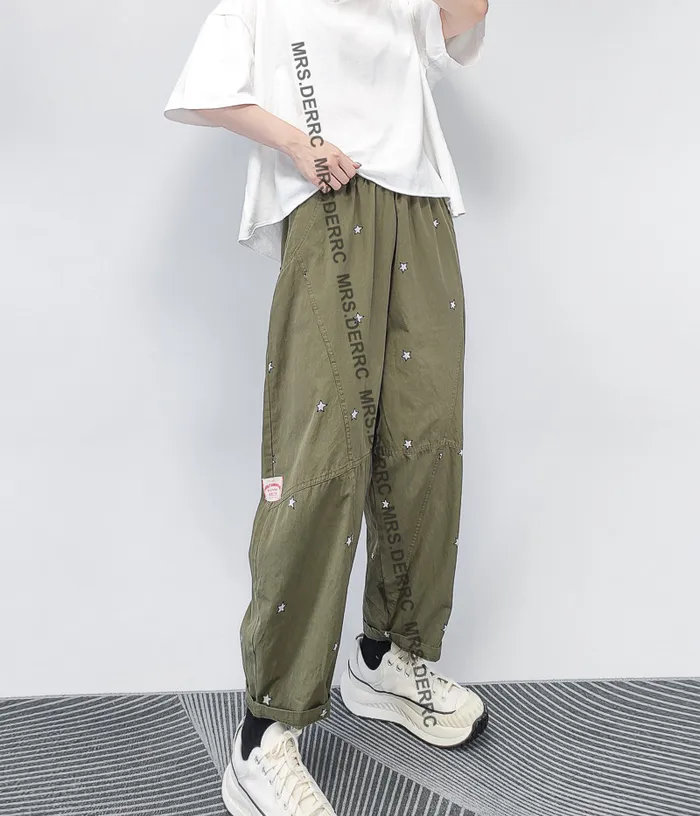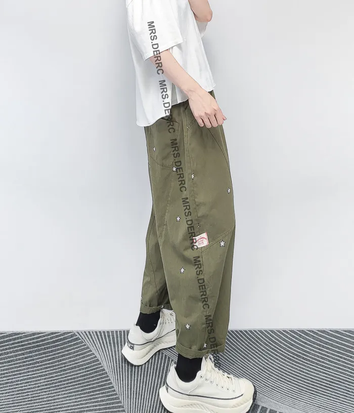 棉混紡印花星星小白標口袋褲(綠色)