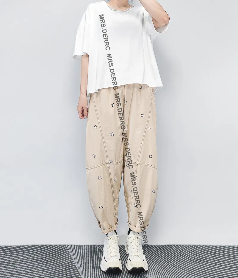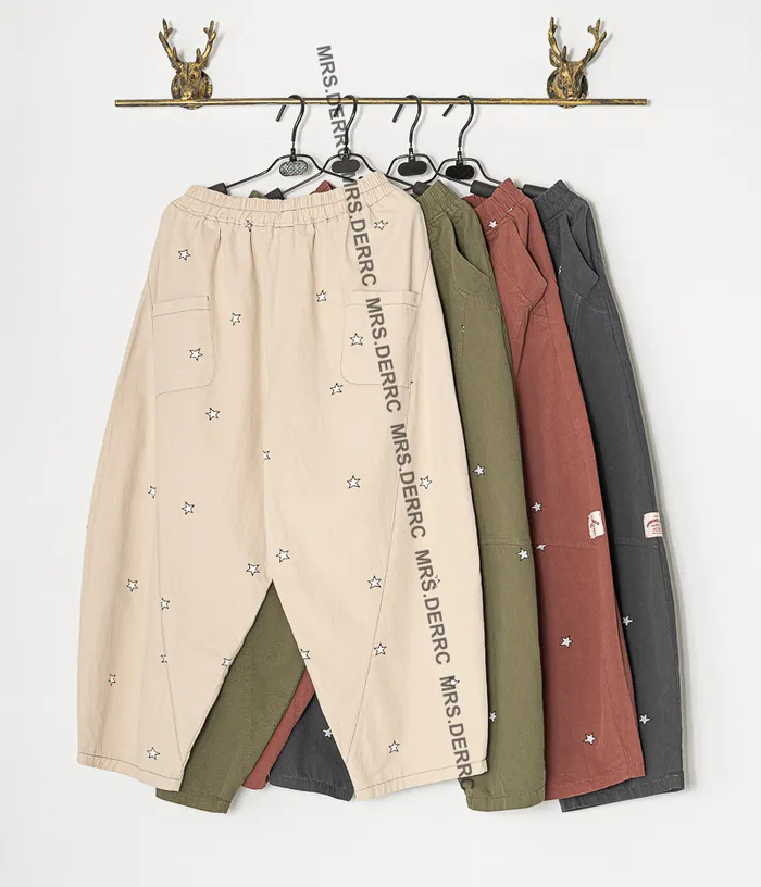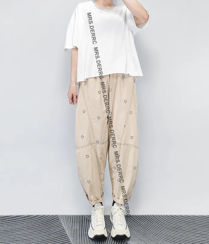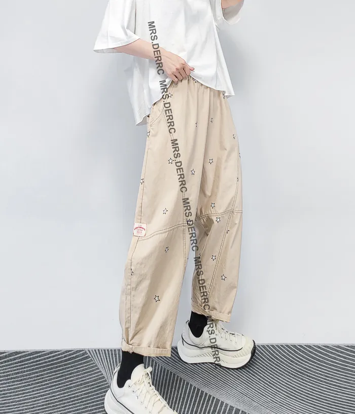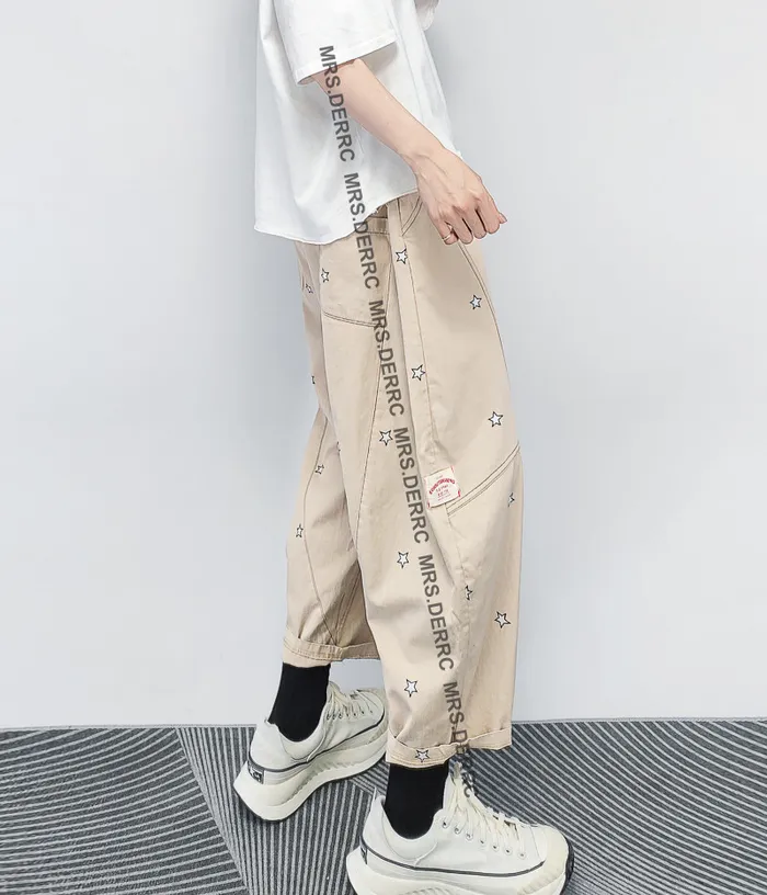 棉混紡印花星星小白標口袋褲(淺卡其)