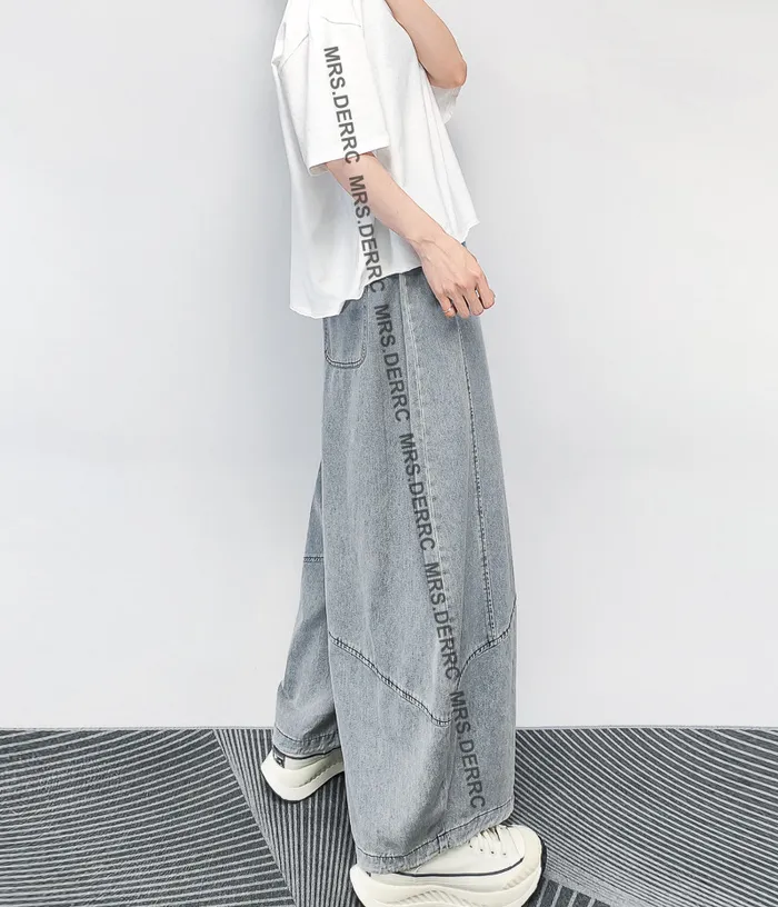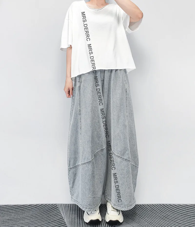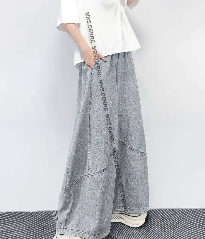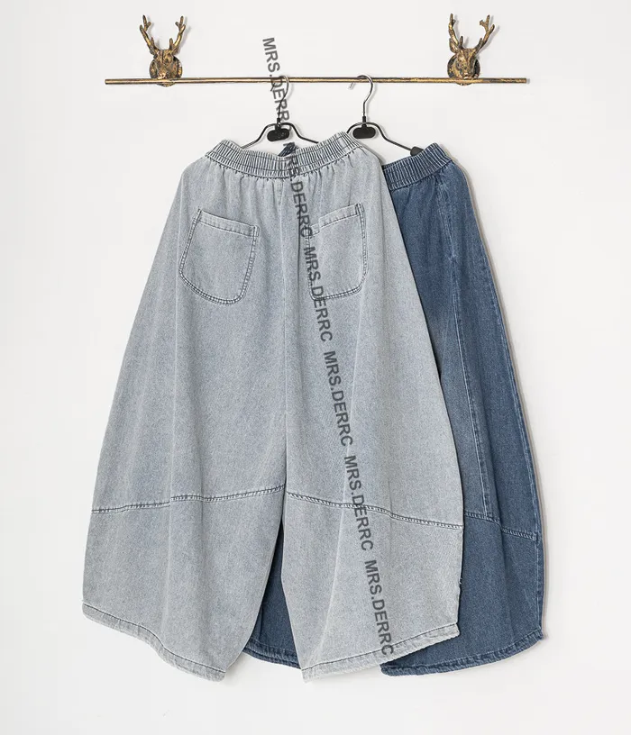 牛仔刷色鬆緊剪裁休閒口袋褲(淺色)