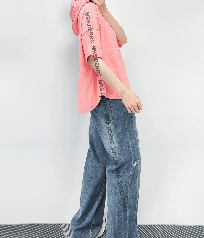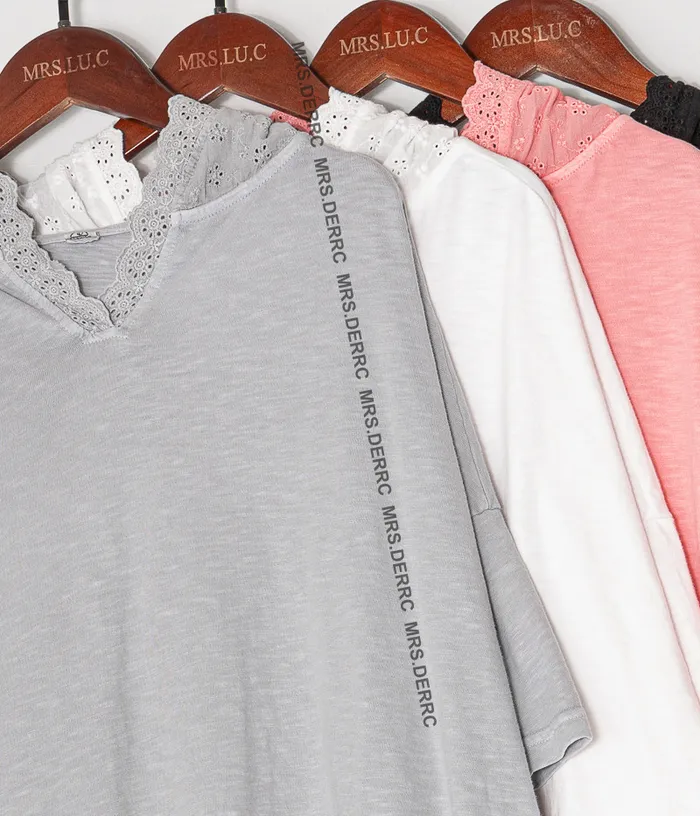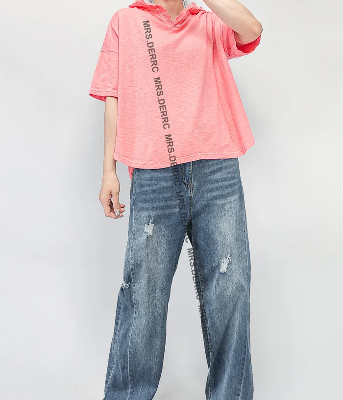 棉質簍空蕾絲拼接連帽上衣(淺粉)