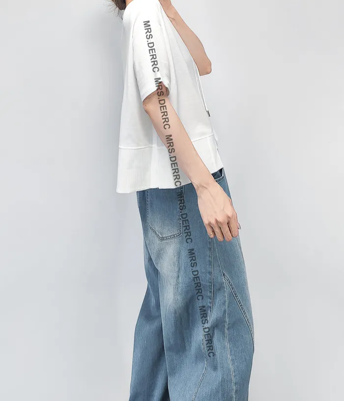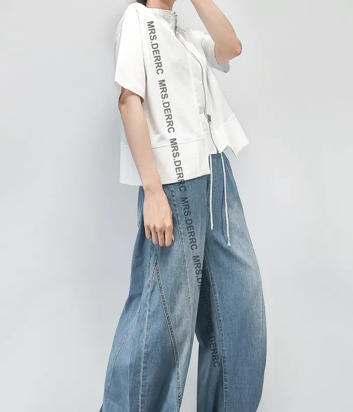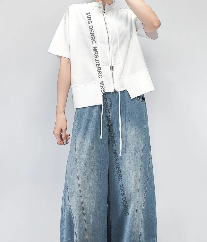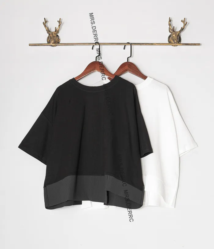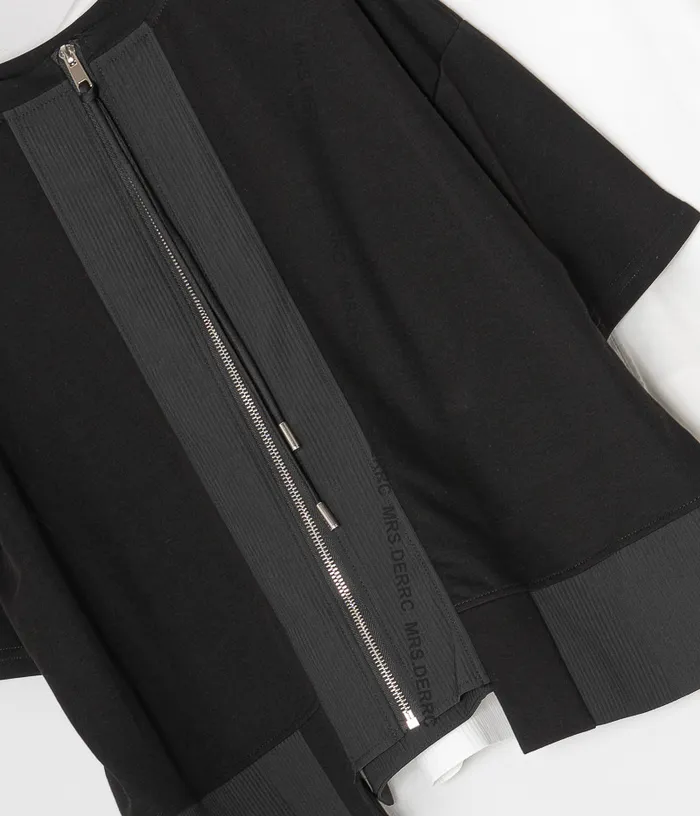 棉混紡兩面穿拉鍊坑條拚接下擺上衣(白色)