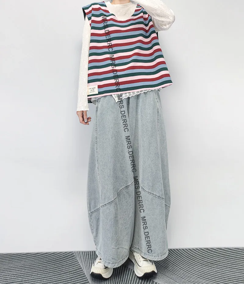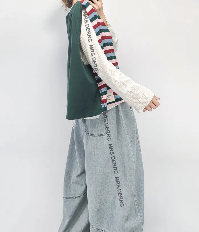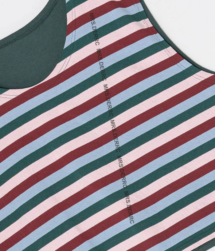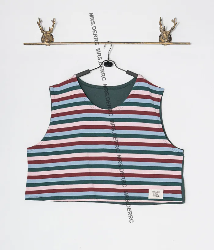 棉質寬鬆短版條紋背心(綠色)