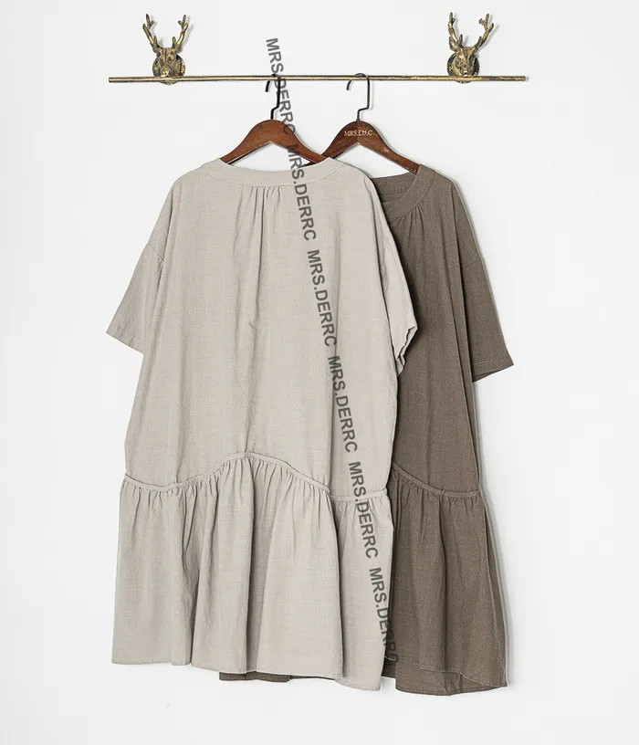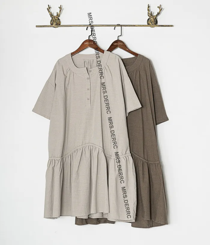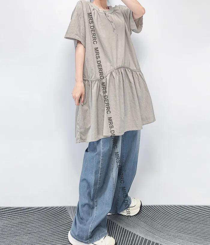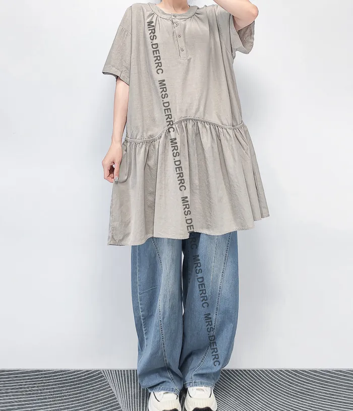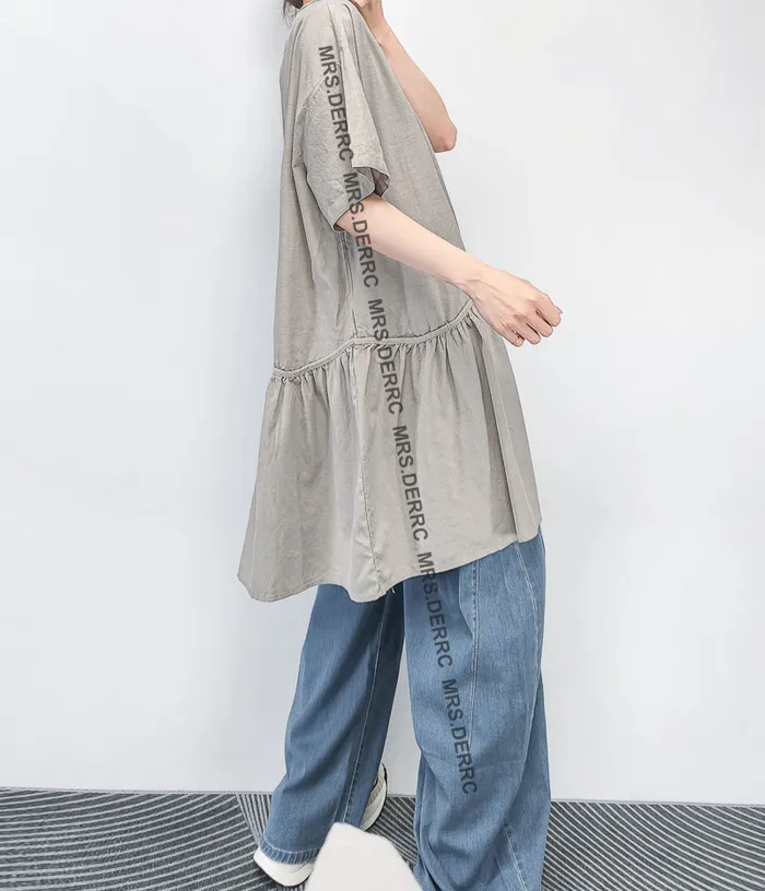 棉混紡半開釦下擺拚接寬鬆長上衣(灰色)