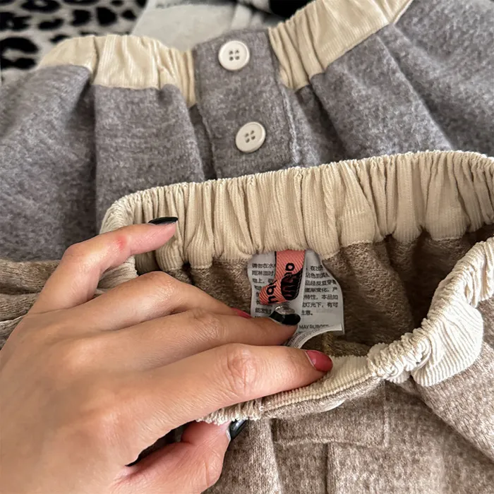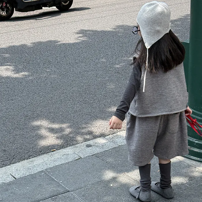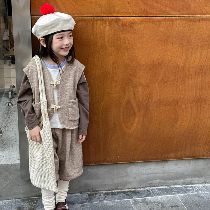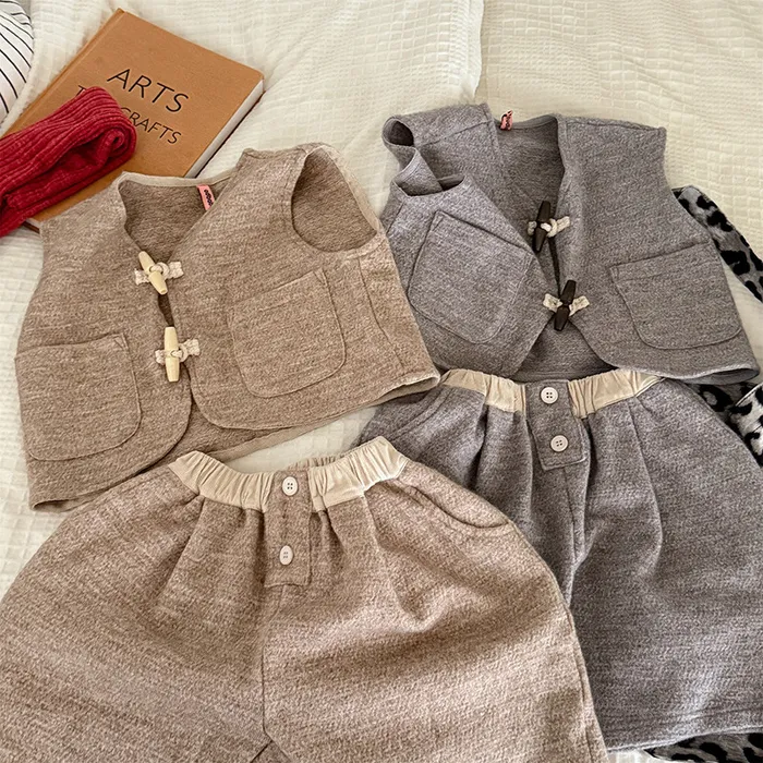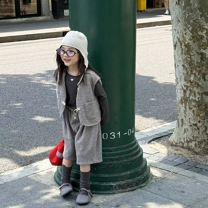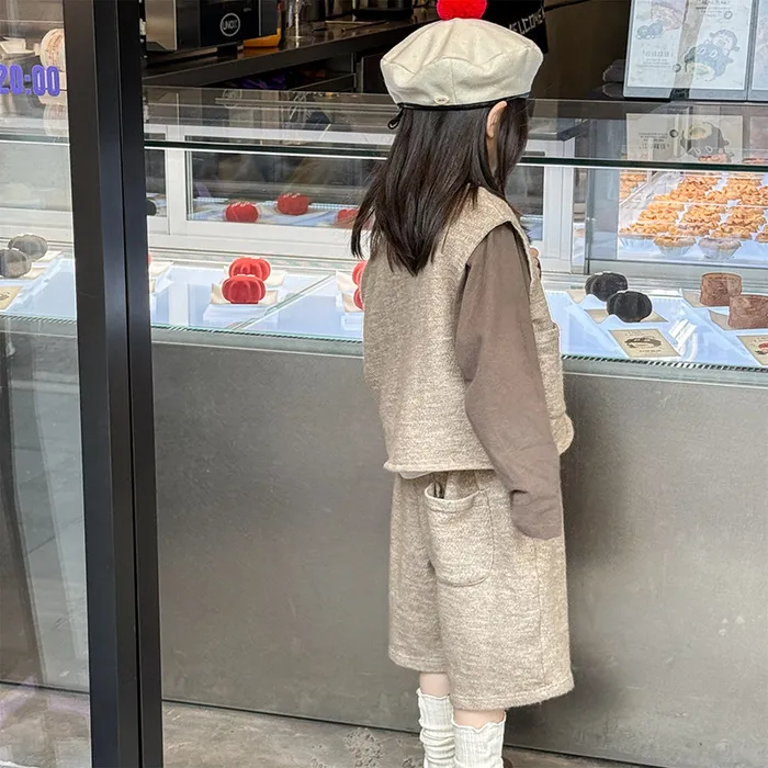 牛角釦口袋背心+撞色拼接口袋短褲套裝