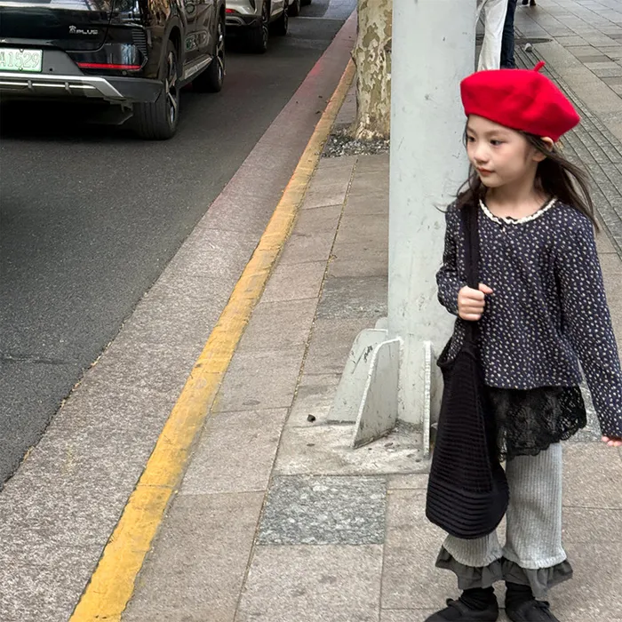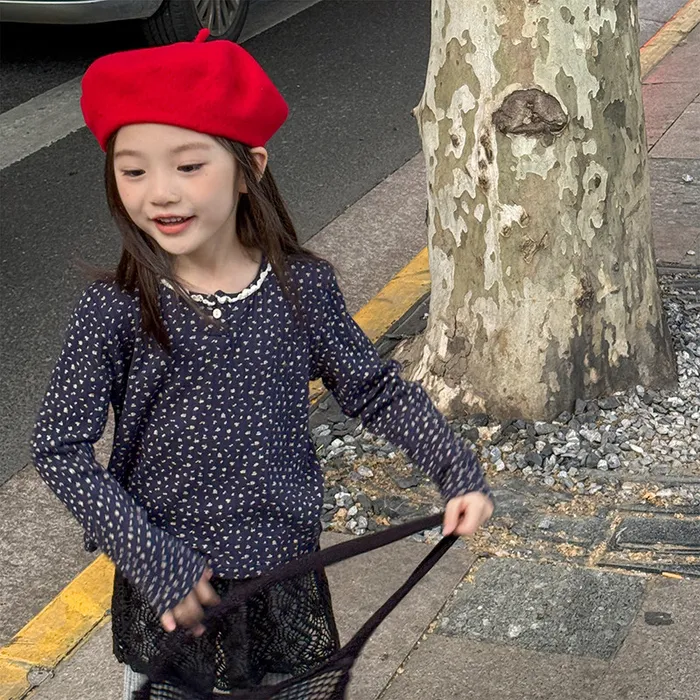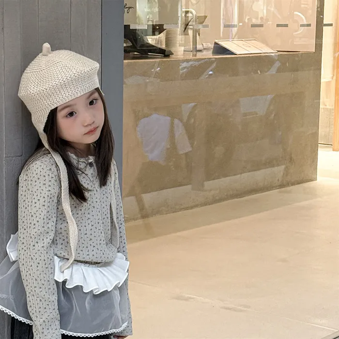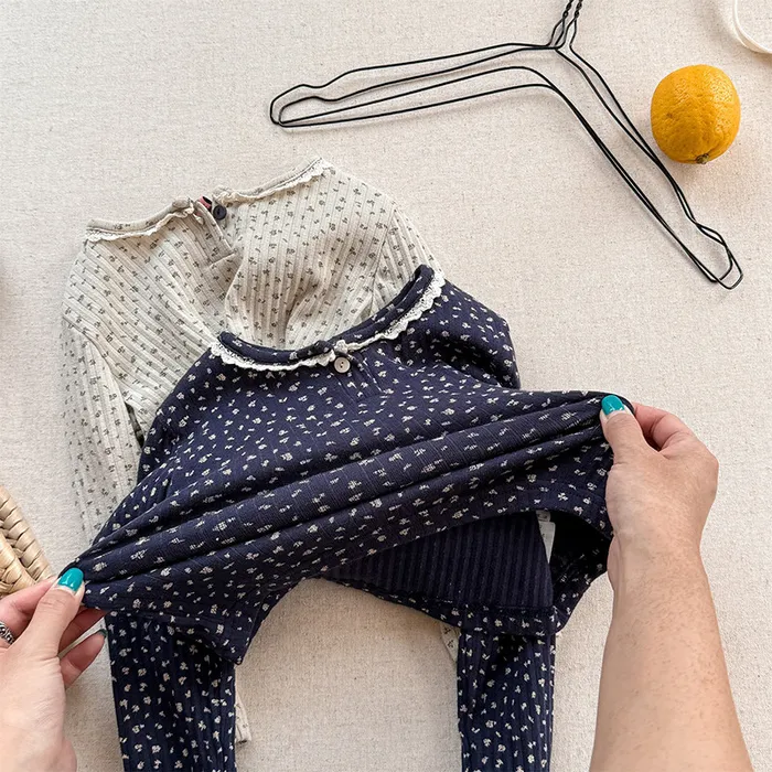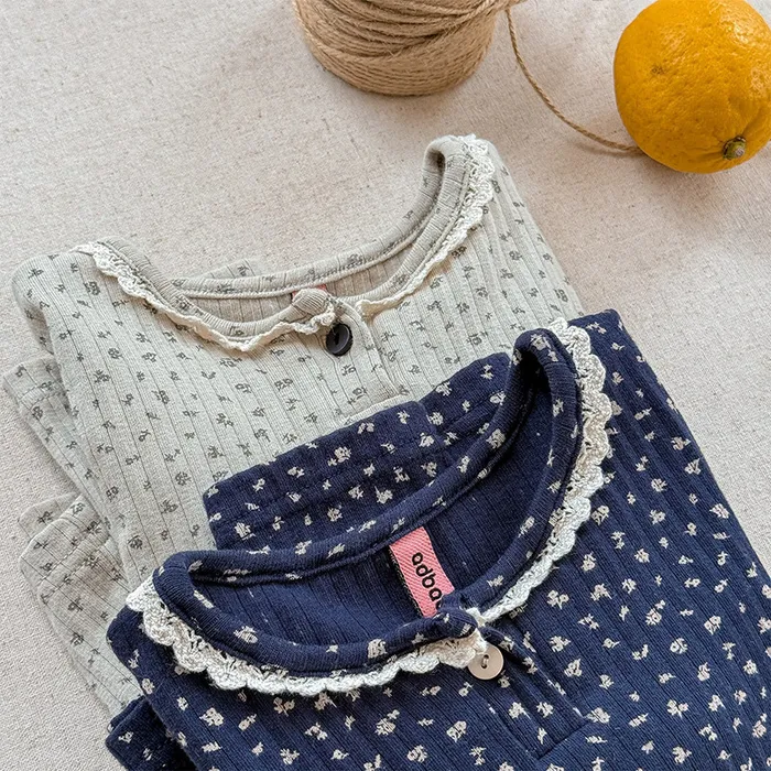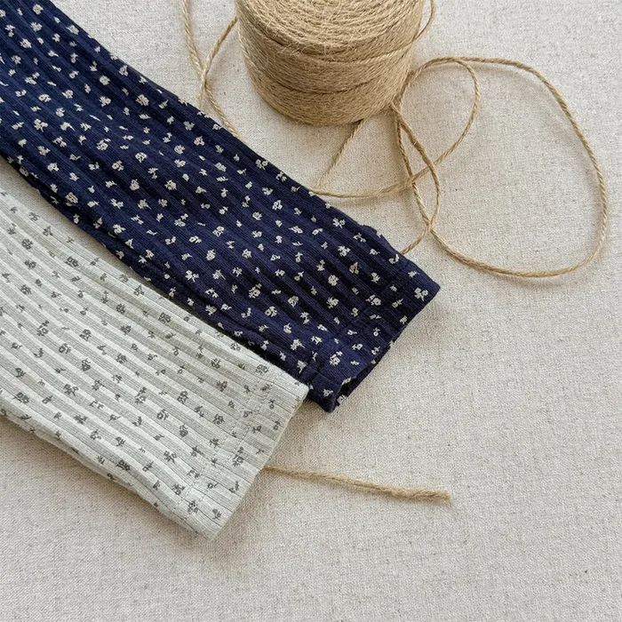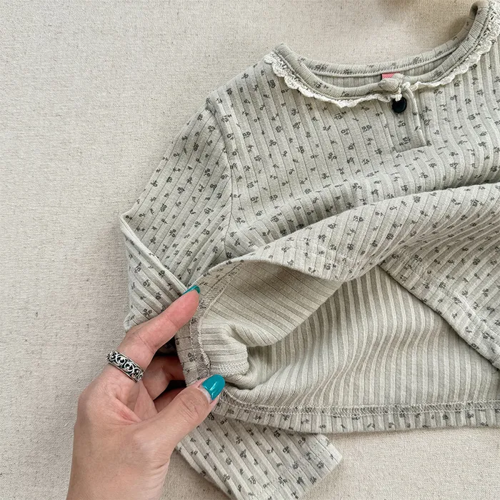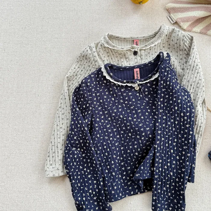 棉質坑條領開釦滾邊印花上衣