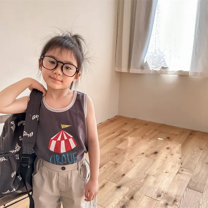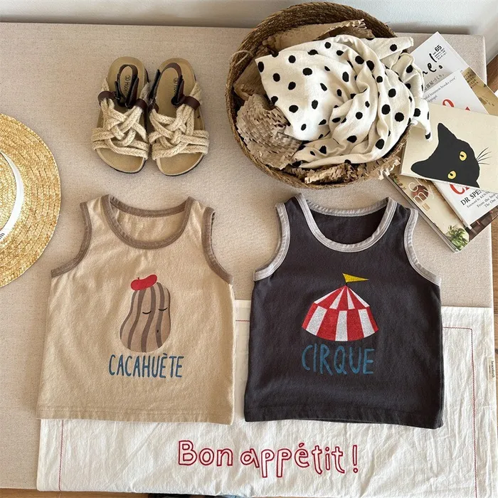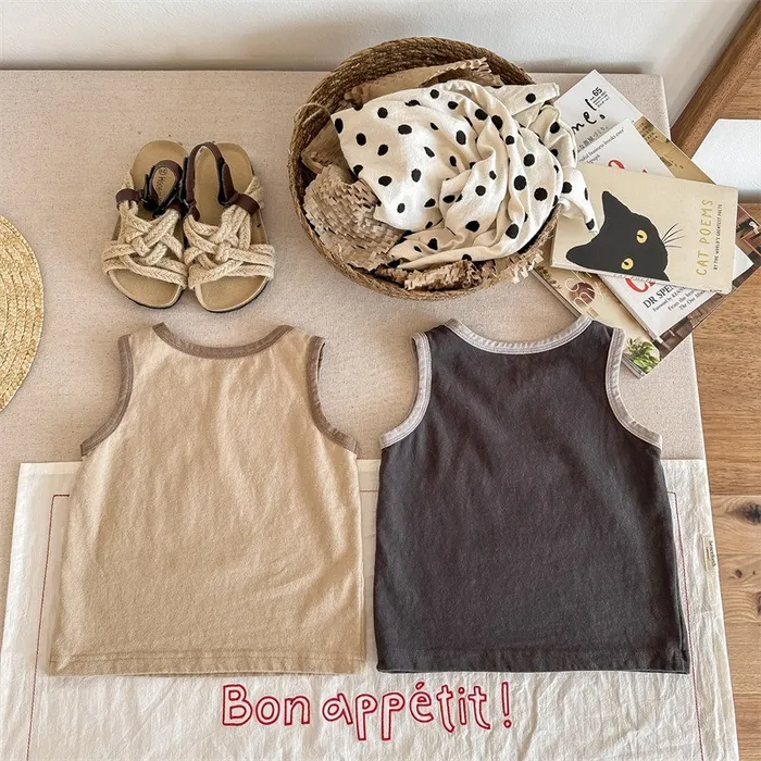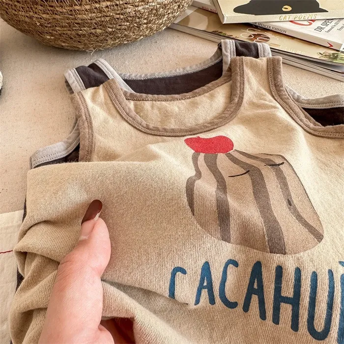 棉質滾邊印花背心