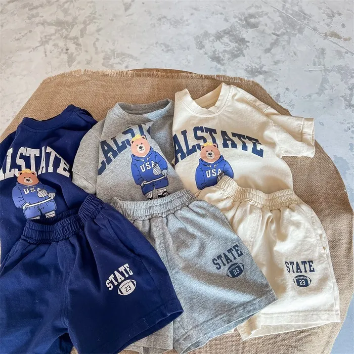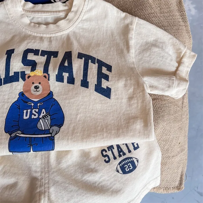 棉質運動小熊上衣短褲套裝