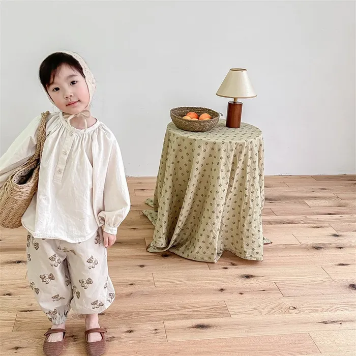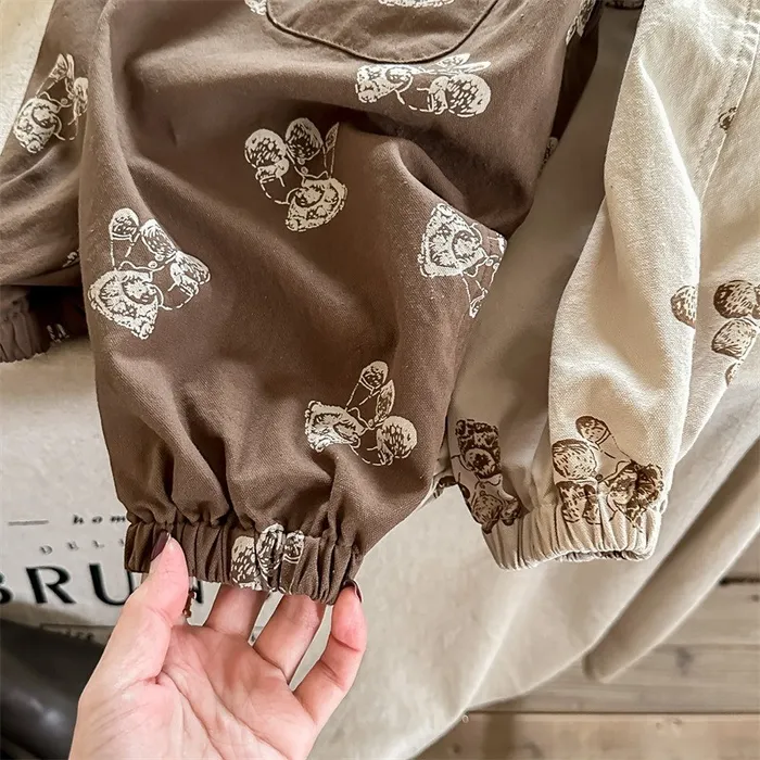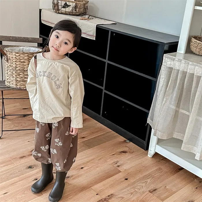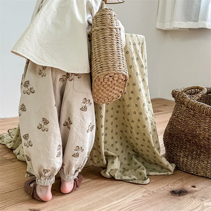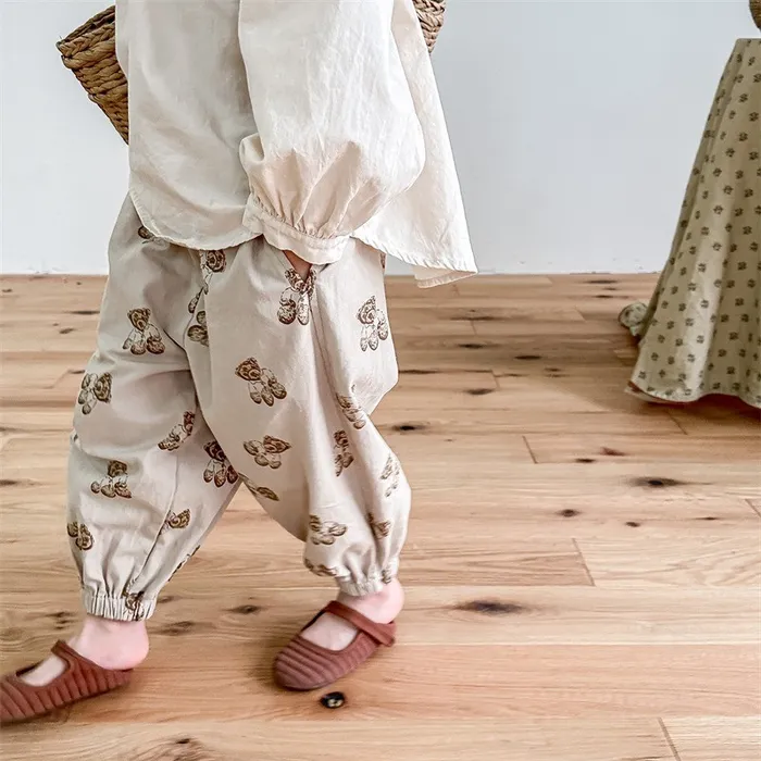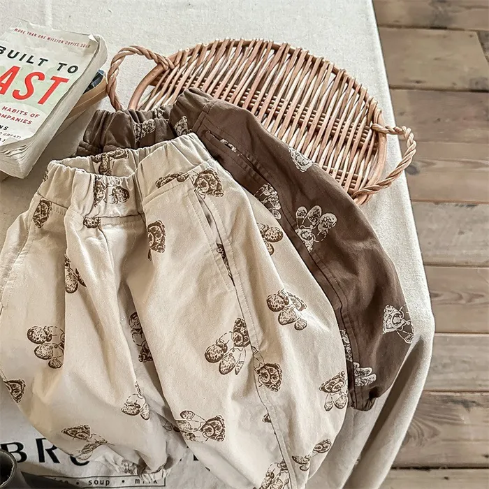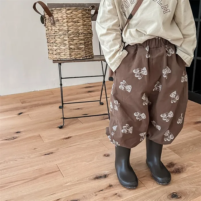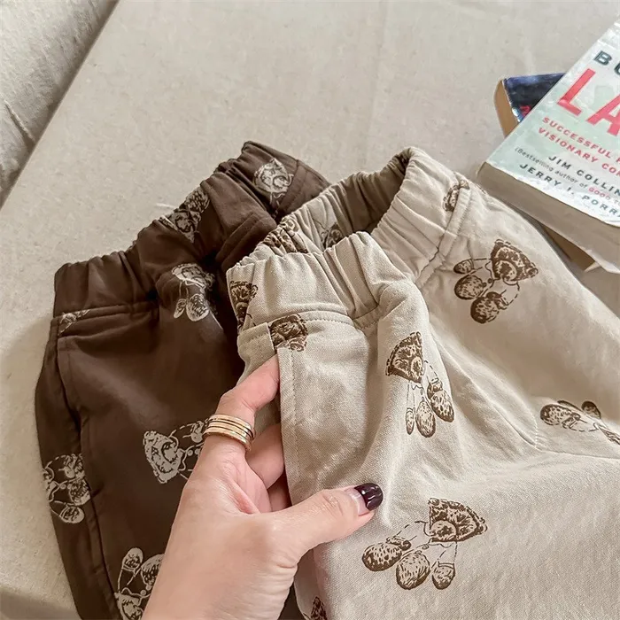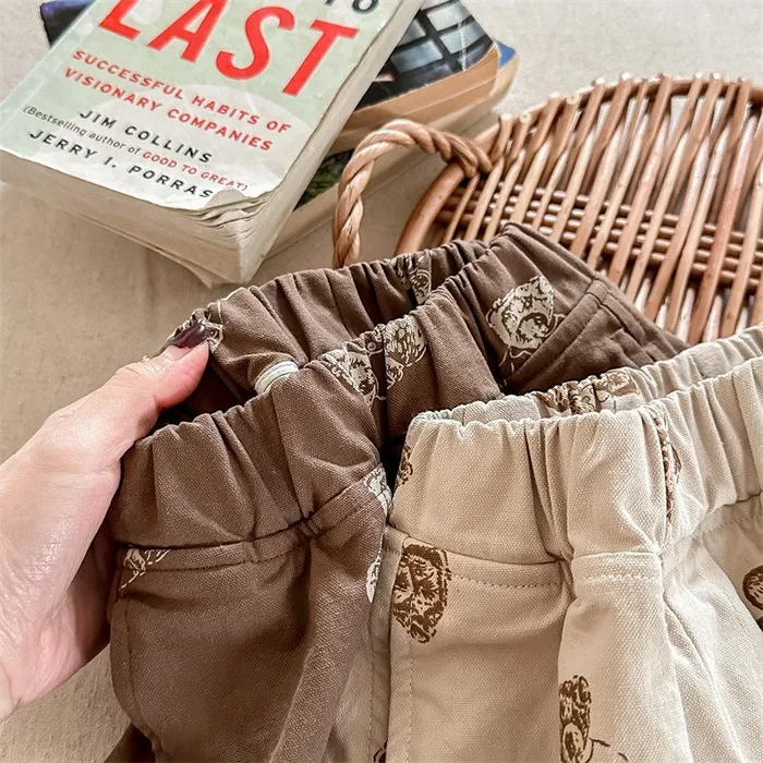 棉質小熊印花鬆緊腰口袋褲