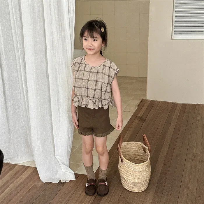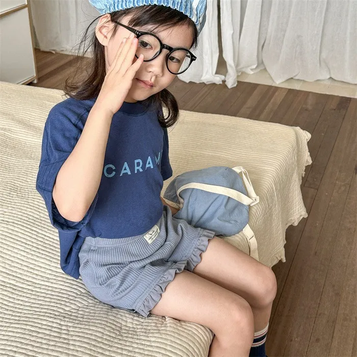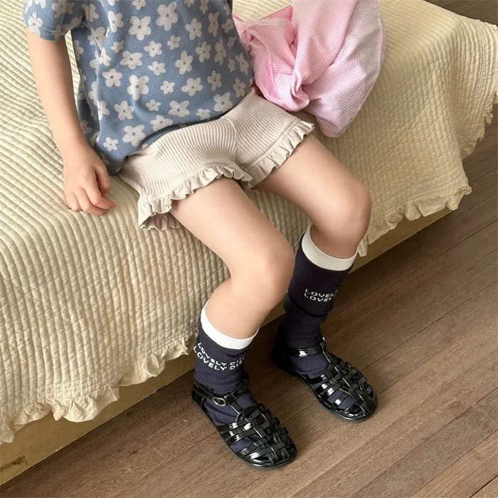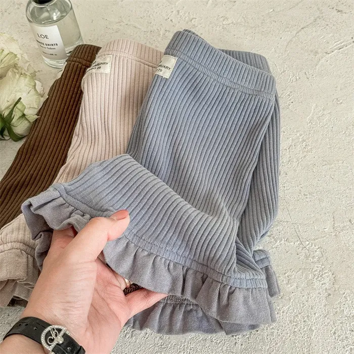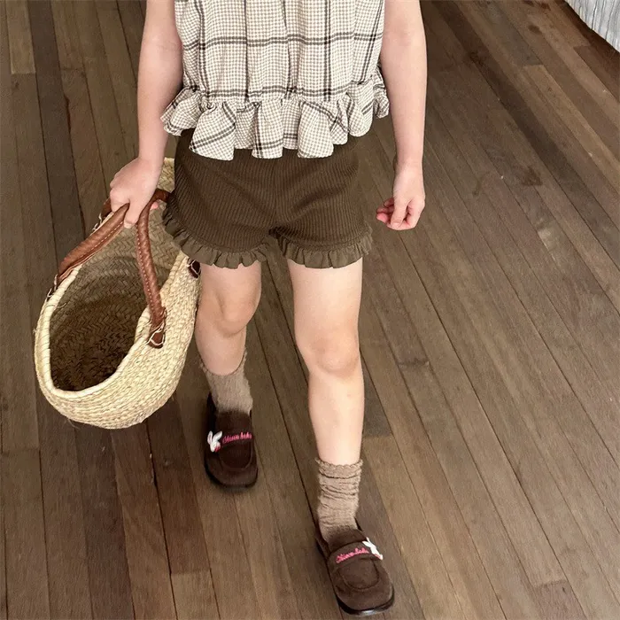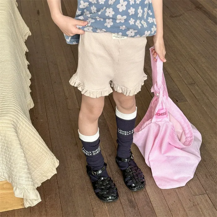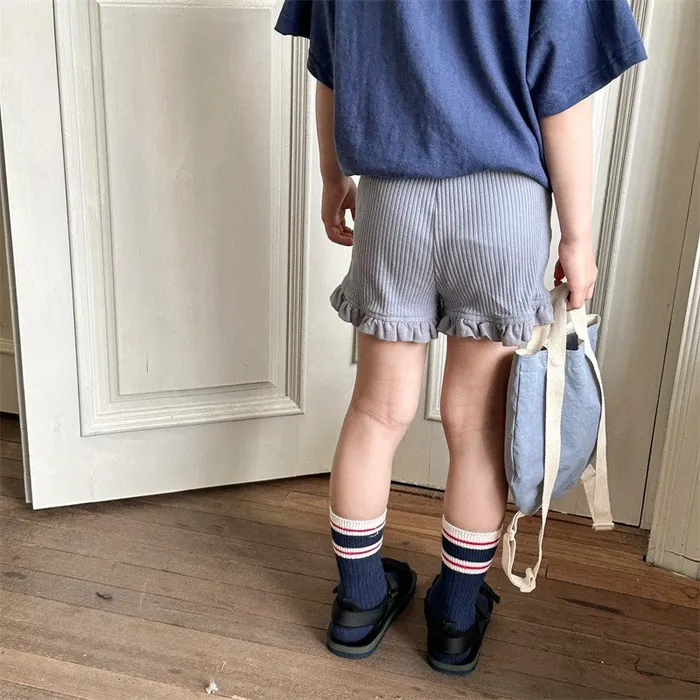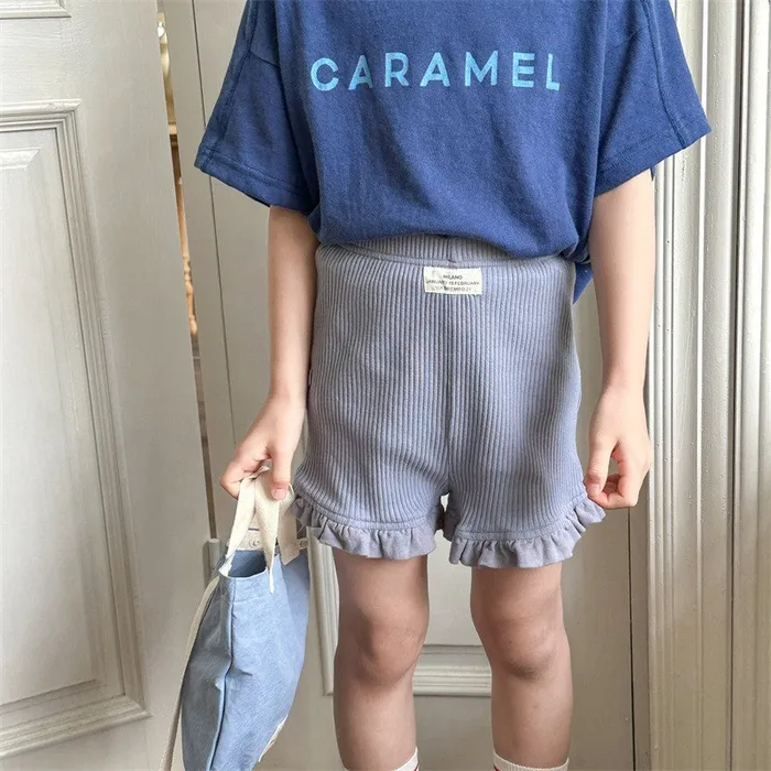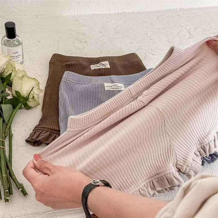 棉質坑條木耳邊褲腳五分內搭褲