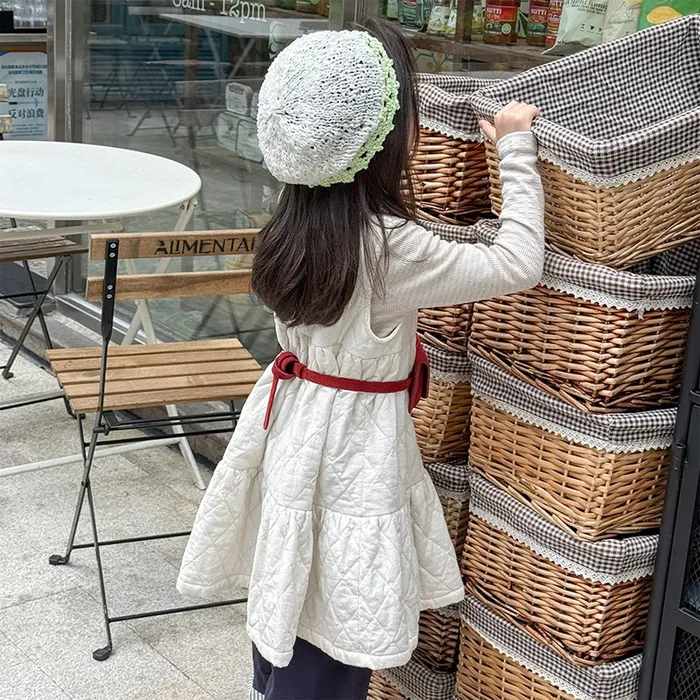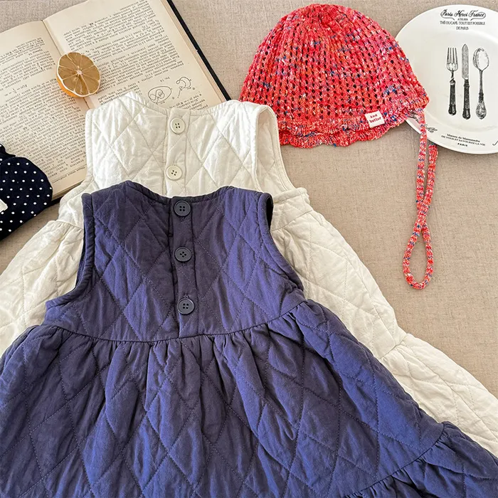 衍縫後開釦多層次背心裙