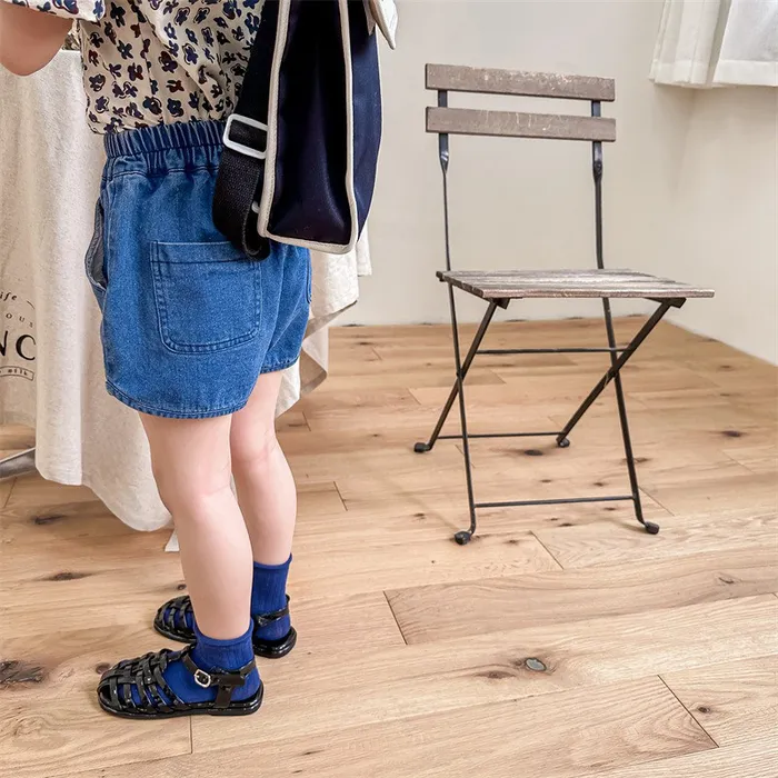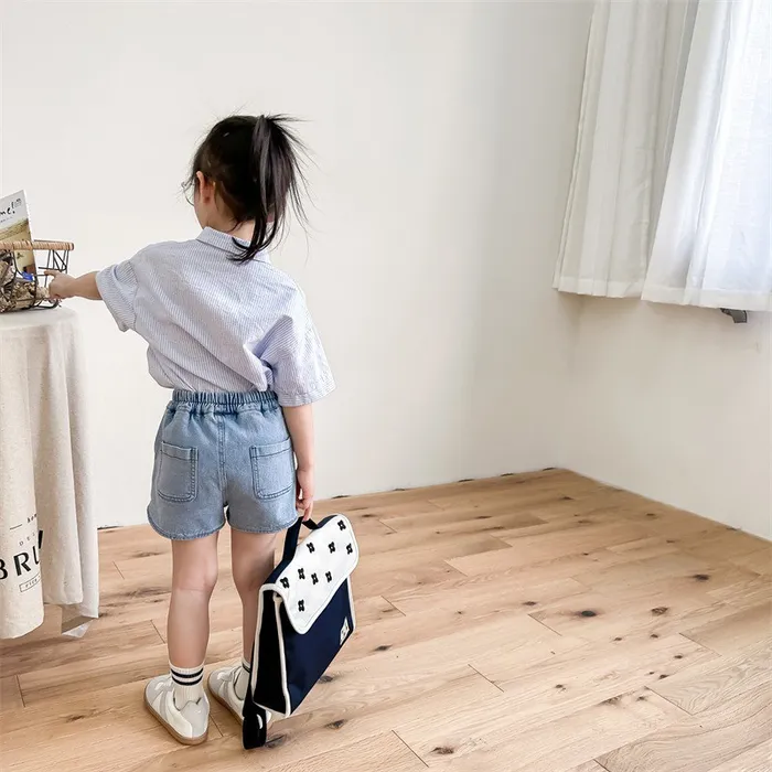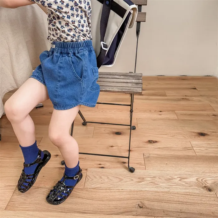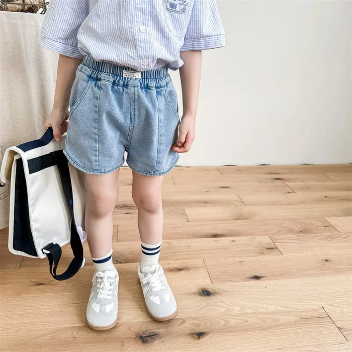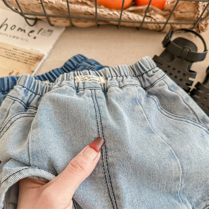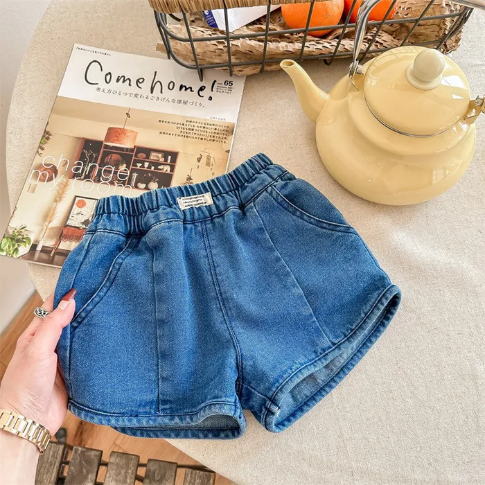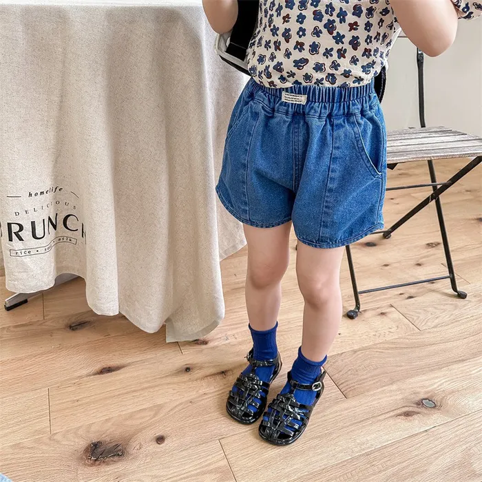 牛仔字母標籤口袋短褲