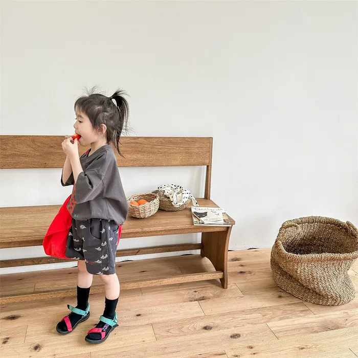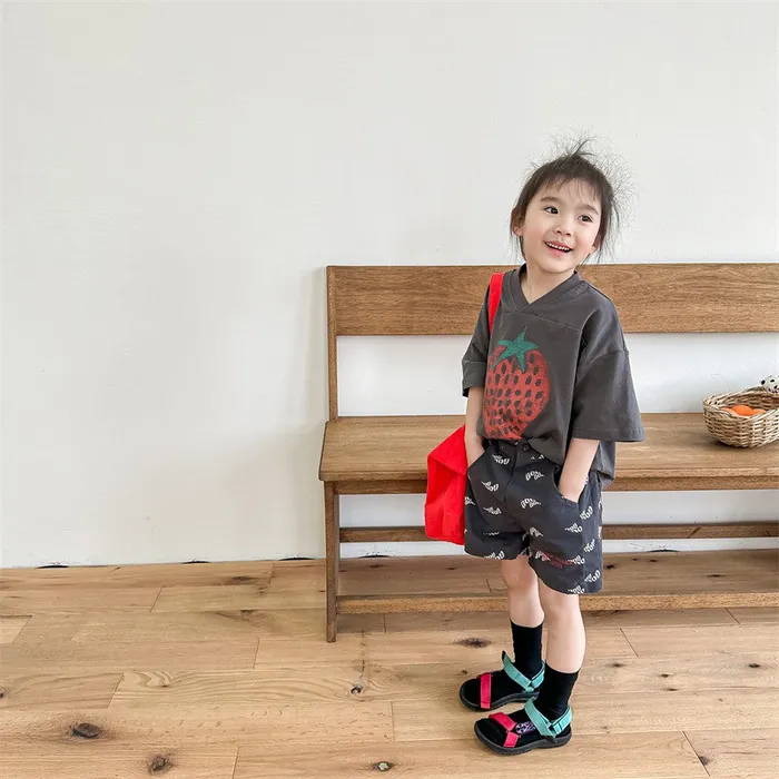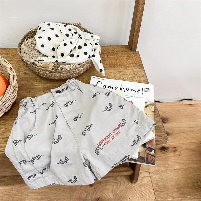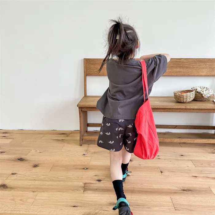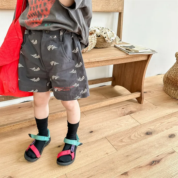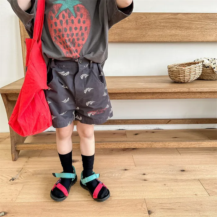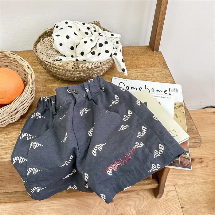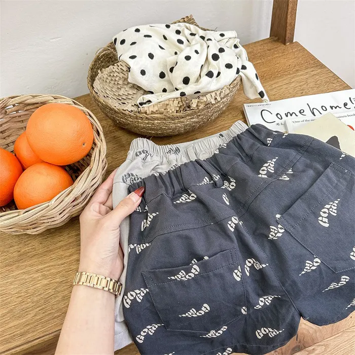棉質印花刺繡字母口袋短褲