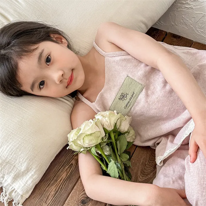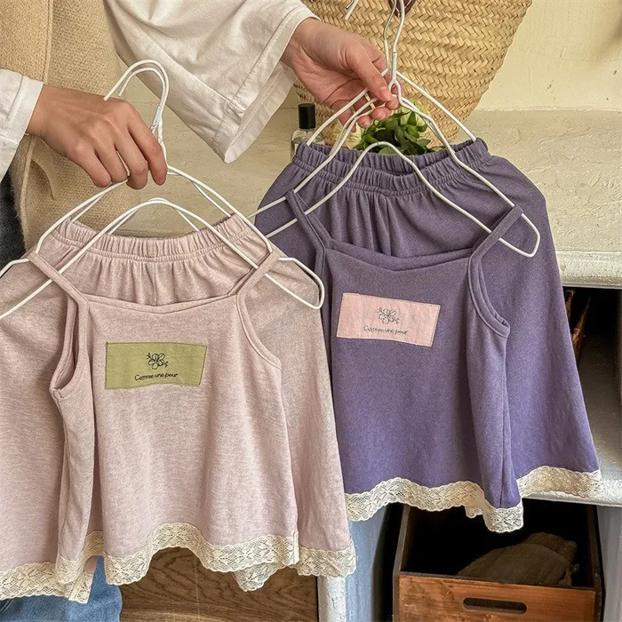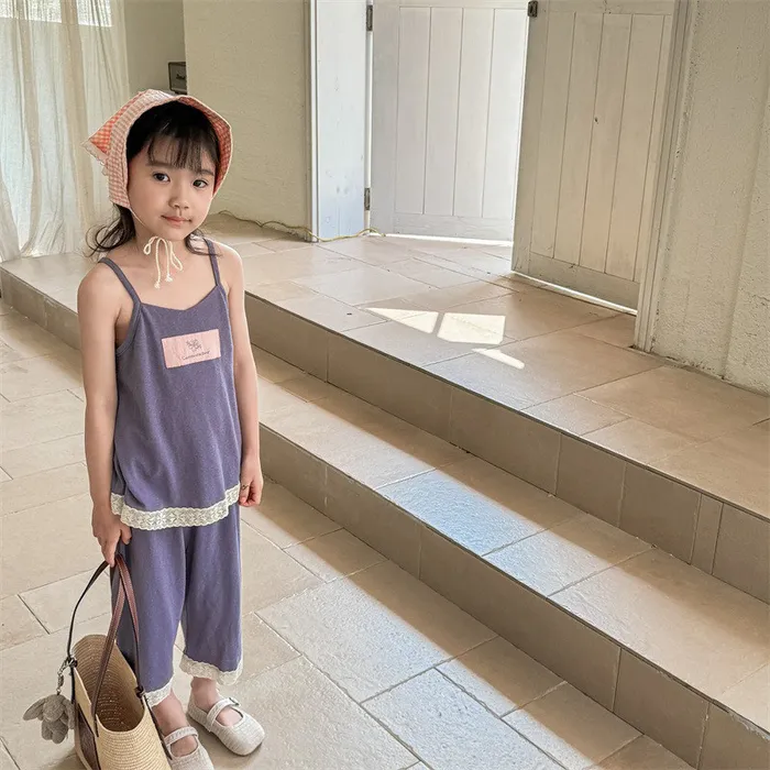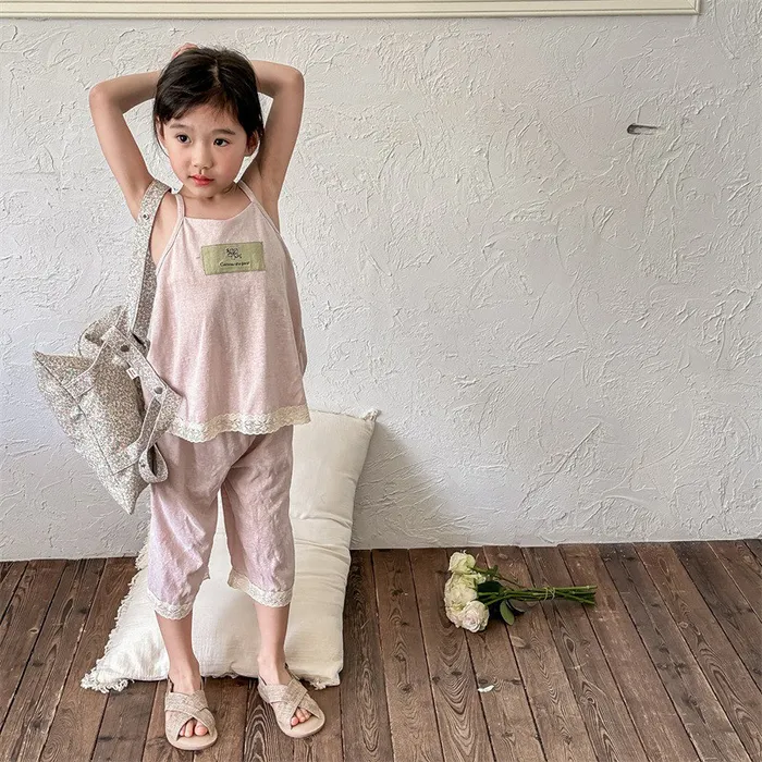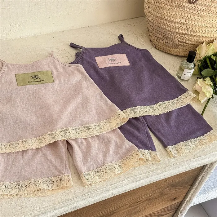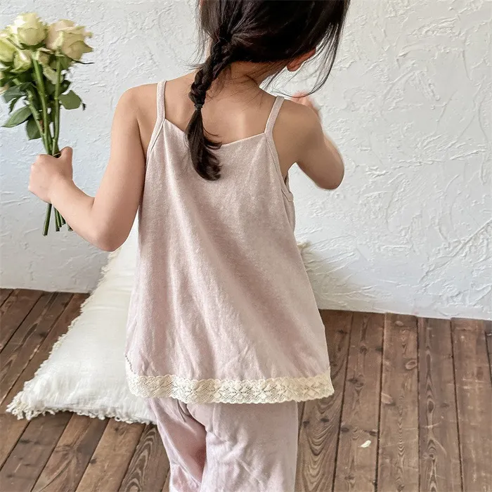 蕾絲花邊居家兩件式套裝(細肩背心+褲子
